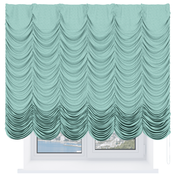 Французская штора лён бирюза, карниз верёвочный