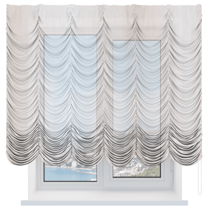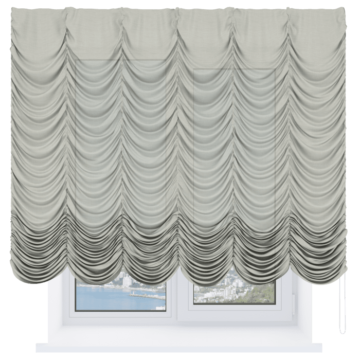 Французская штора лён кашемир серый, карниз верёвочный