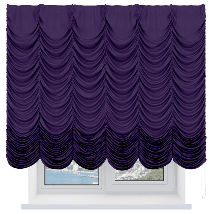 Французская штора вельвет тёмно-фиолетовый, карниз верёвочный