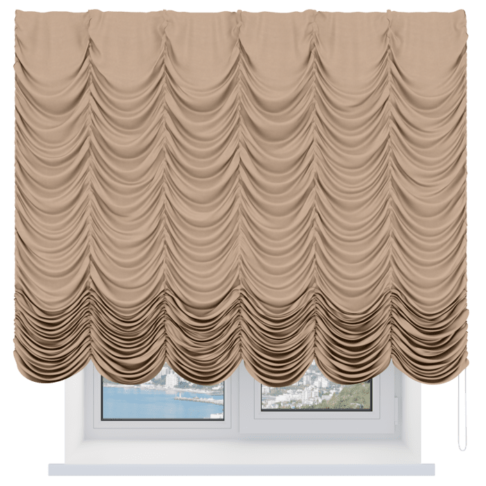Французская штора вельвет песочный, карниз верёвочный