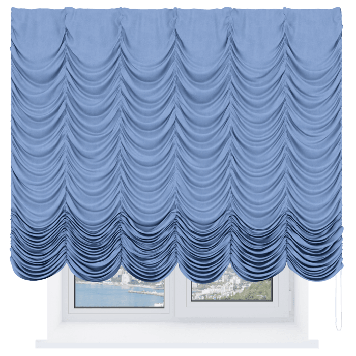 Французская штора вельвет васильковый, карниз верёвочный