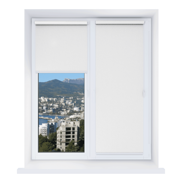 Открытые рулонные шторы – наиболее компактный и недорогой вариант солнцезащитных систем без короба и направляющих, где вал с намотанной тканью остается открытым. Планка, вшитая в нижний край ткани, обеспечивает ровное натяжение полотна и предотвращает его провисание.